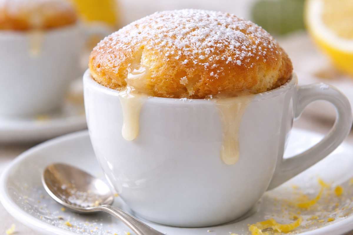 Preparate le tazzine: Siamo qui per fare qualcosa di diverso, quindi non servono i soliti pirottini. Prendete tre tazzine resistenti, di quelle che usate per il caffè—quelle che vi fanno sentire un po’ più eleganti ogni mattina. Dividete l’impasto tra le tazzine (circa 2/3 di capienza per tazzina), così il composto avrà spazio per gonfiarsi durante la cottura.